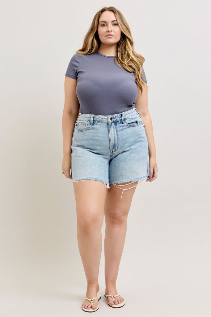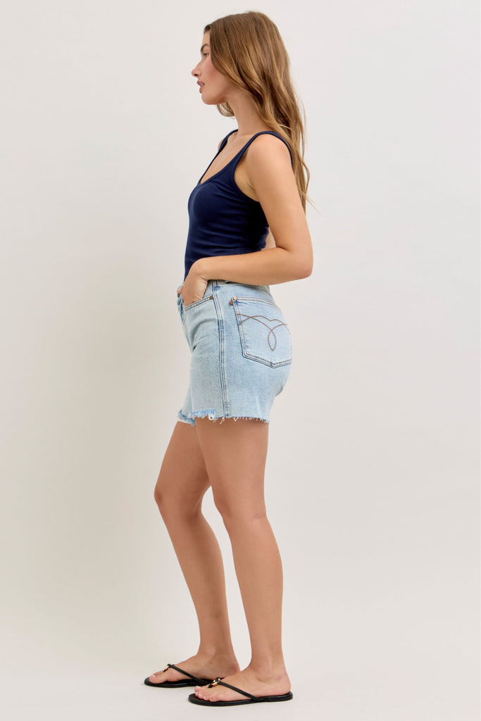 Judy Blue classic Dad fit! Mid-rise and longer in-seam! Not quite bermuda length.