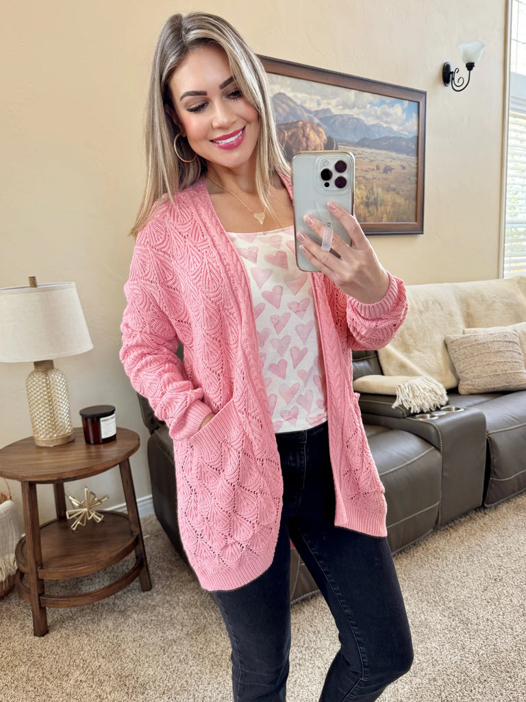 Michelle Mae Open Knit Cardigans! Sooo cute! Now available in Red, Pink, and Grey!