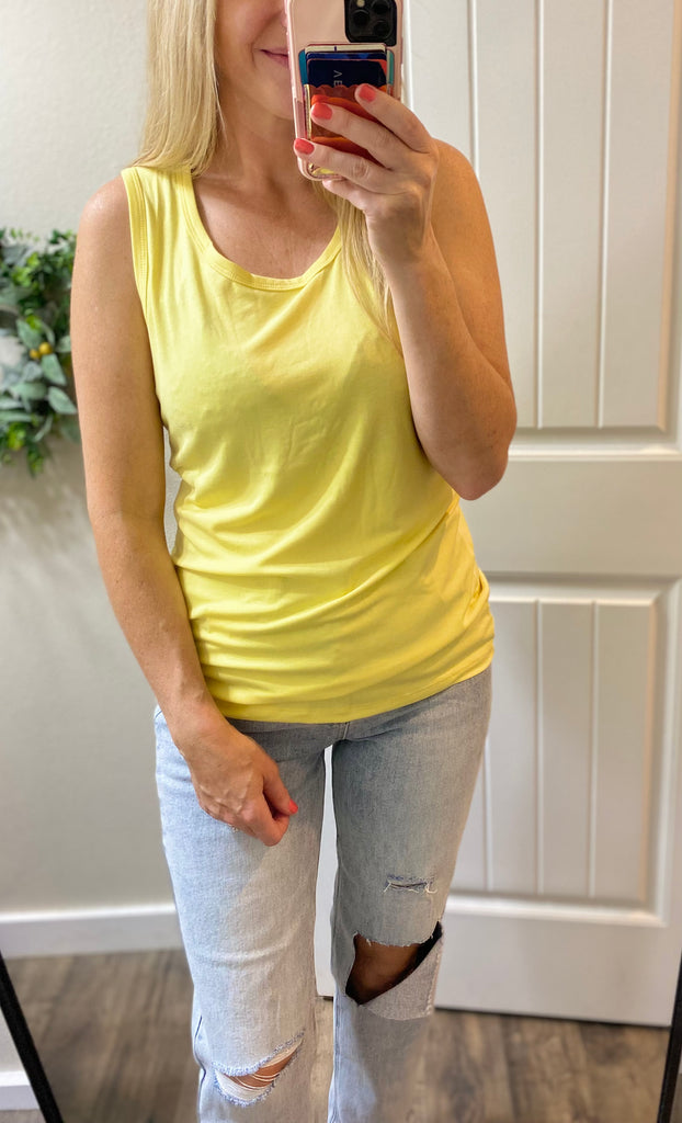 Your next “go to” modest micro ribbed tank! Super stretchy with a feminine fit!